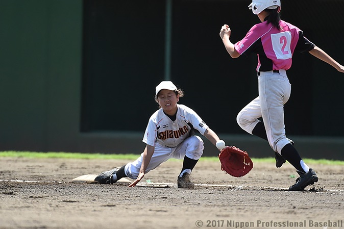 1回表静岡の攻撃で先頭中谷日菜香の二塁打、続く鈴木彩羽、渡辺智絵の3連続ヒットと相手の守備の乱れで初回3点を先制。