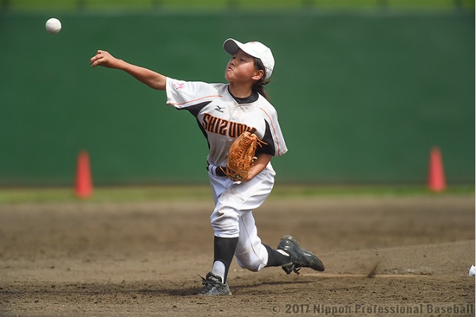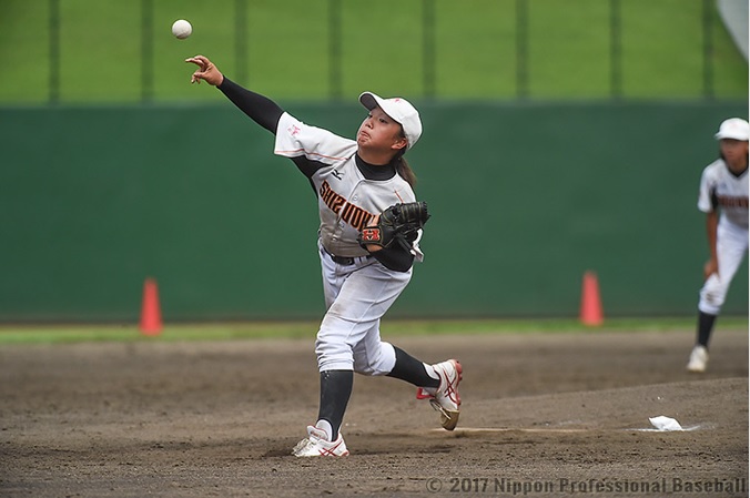 5回裏から二番手飯田美咲にスイッチ。飯田美咲は本大会初登板ではあるが静岡県大会でも実績のあるコントロールに定評のある投手。この回三人を凡打に打ち取る。
