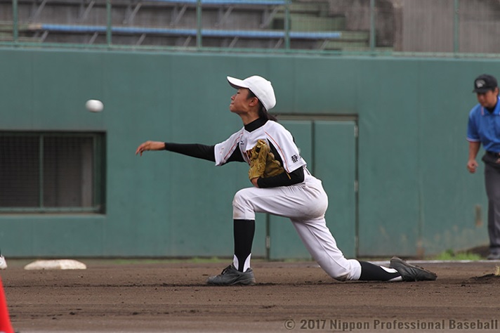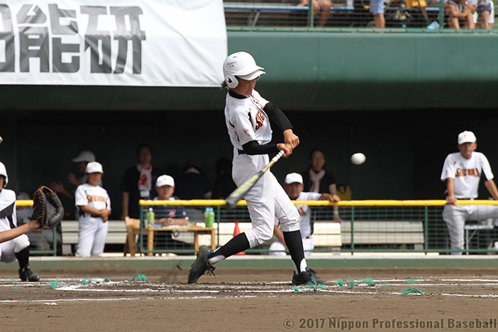 2回表、ツーアウトランナー無しから粘って連続フォアボールの場面で秘密の4番である九嶋結菜がタイムリーツーベースを叩く。その後も粘り鈴木彩羽のタイムリーを加え、この回一気に5得点、試合の趨勢を決した。